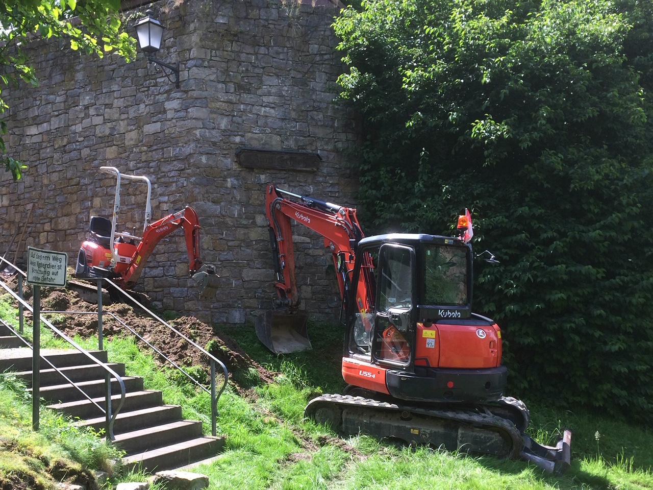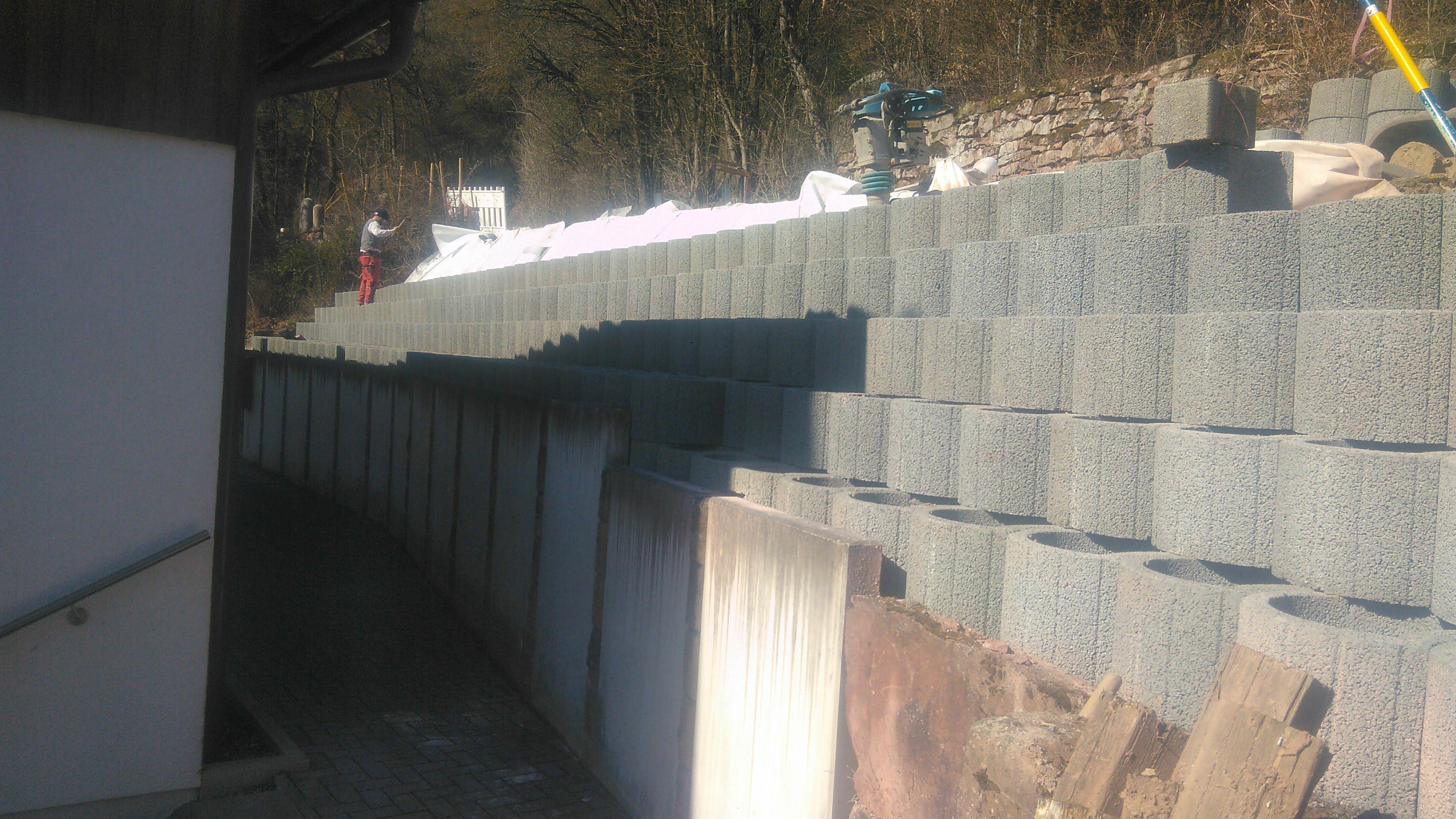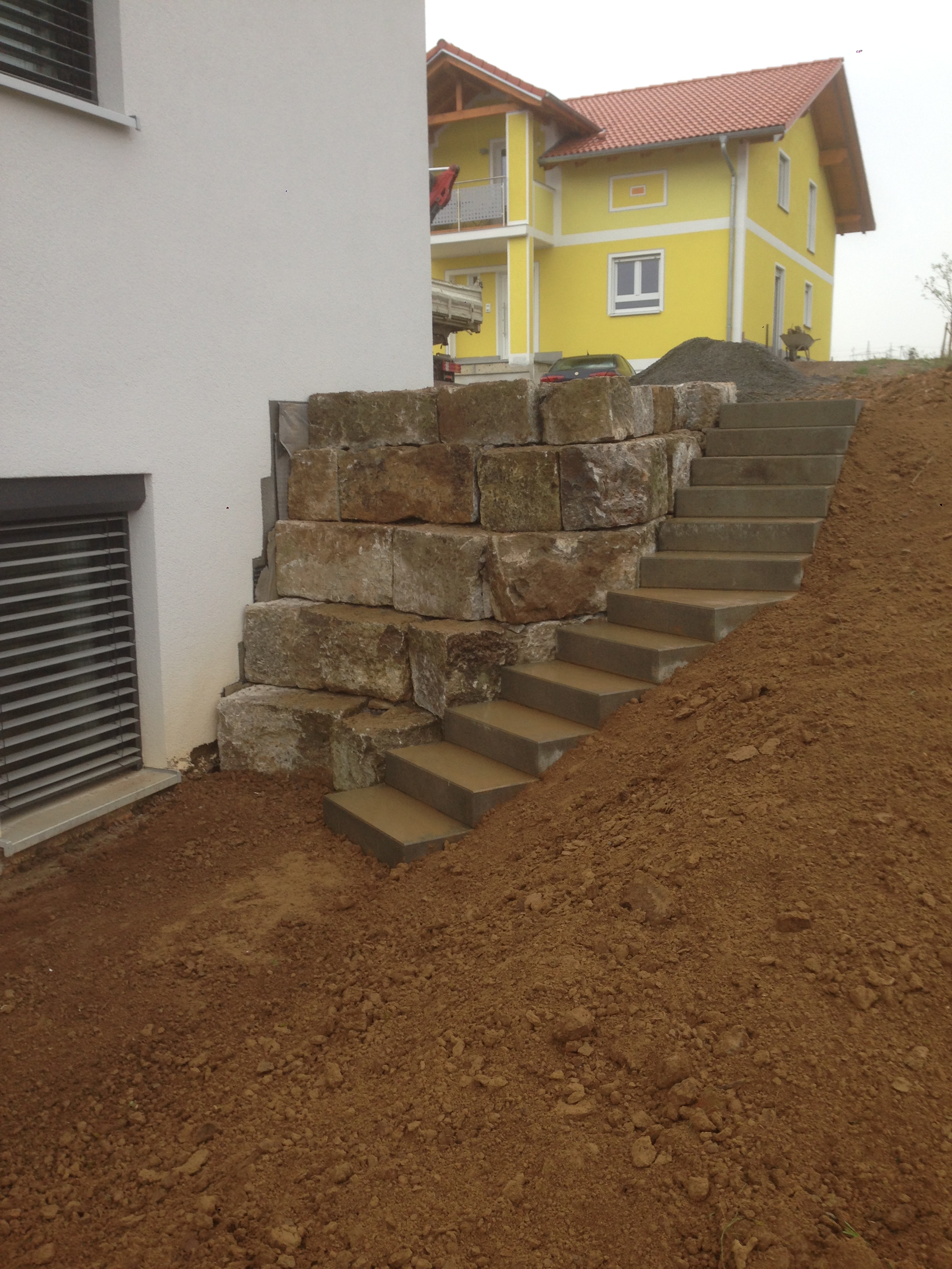 Im Bereich Hangsicherung stehen wir Ihnen mit unserem leistungsstarken Fuhr- und Maschinenpark und langjähriger Erfahrung zur Verfügung. Abhängig von Ihren Wünschen und den baulichen Anforderungen ist eine Hangsicherung unter Verwendung unterschiedlicher Materialien möglich. Für große Hangflächen zum Beispiel haben sich Betonfertigteile und Ortbeton bewährt. Kleinere Hänge, etwa an Terrassen, lassen sich hervorragend mit Sandsteinfindlingen, Kalkbruchquadern oder sowie Pflanzringen und Natursteinmauerwerk befestigen. Wir beraten Sie kompetent bei der Auswahl geeigneter Materialien.